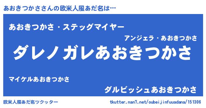 | 意味不明あだ名 | 『住所不定無職あおきつかさ(84歳)』 |