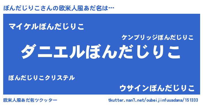 | 男性向けラノベタイトル風あだ名 | 『ノーゲーム・ノーボンダジリコ』 |