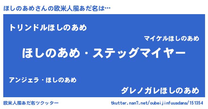 | 男性向けラノベタイトル風あだ名 | 『緋弾のホシノアメ』『ほしのあめの憂鬱』 |