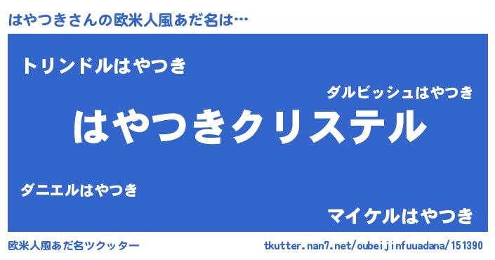 | ファンタジー風あだ名 | 『エターナルハヤツキー』『ハヤフェル』 |