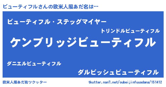 | 男性向けラノベタイトル風あだ名 | 『Re:ビューティフルから始める異世界生活』 |