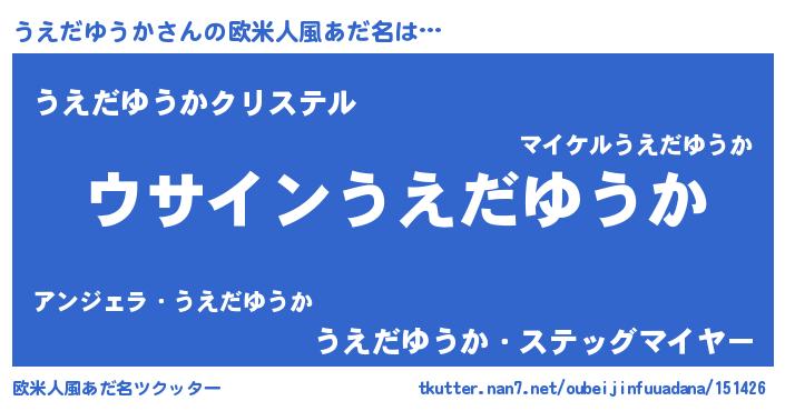 | 女子向けラノベタイトル風あだ名 | 『うえだゆうかの卵を拾いまして』 |