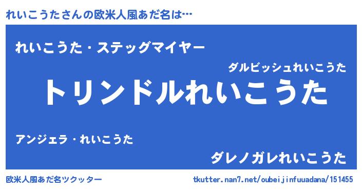 | 女子向けラノベタイトル風あだ名 | 『れいこうたの玉の輿計画!』 |