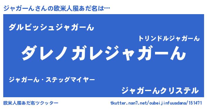 | 料理風あだ名 | 『ジャガーんのカルパッチョ風』 |