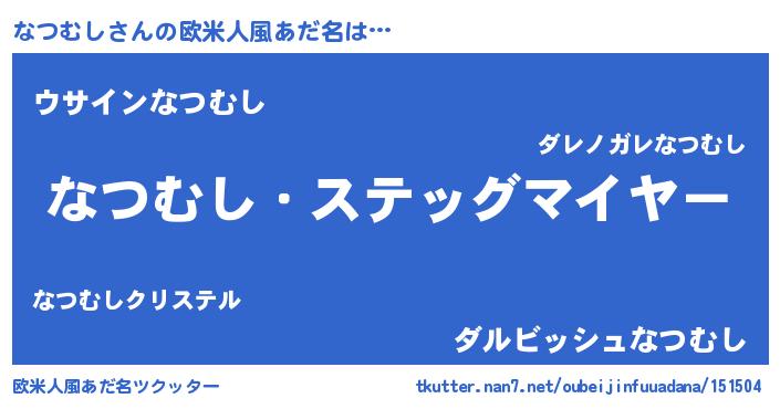 | ヘコむあだ名 | 『なつお』『なつむし(笑)』『豆乳』 |