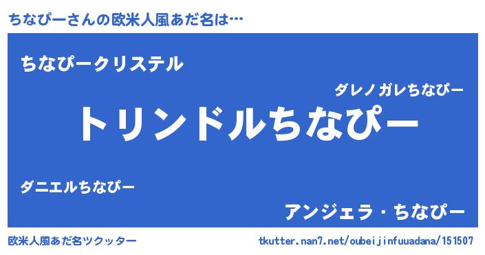 | 男性向けラノベタイトル風あだ名 | 『転生したらちなぴーだった件』 |