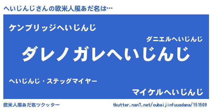 | 意味不明あだ名 | 『住所不定無職へいじんじ(7歳)』 |