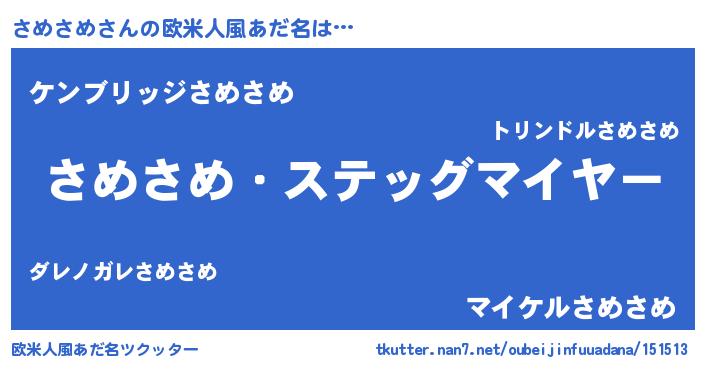 | ヘコむあだ名 | 『さめふぇ~』『さめさめ(遠い目)』 |