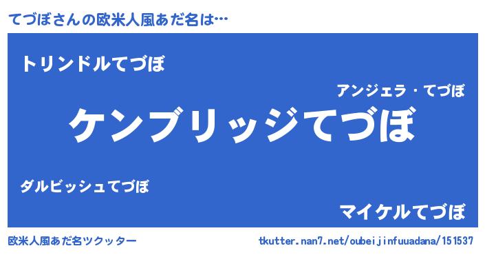 | 男性向けラノベタイトル風あだ名 | 『Re:てづぼから始める異世界生活』 |