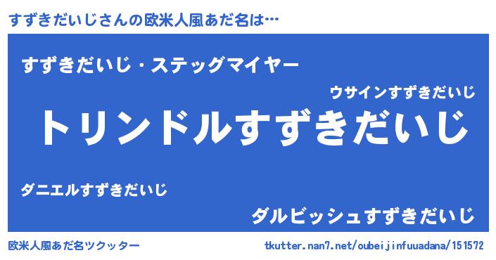 | 男性向けラノベタイトル風あだ名 | 『すずきだいじ~年齢イコール彼女いない歴の魔法使い~』 |