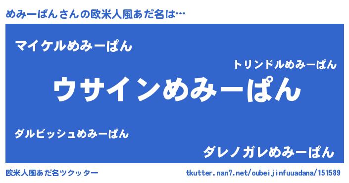 | 男性向けラノベタイトル風あだ名 | 『ダンジョンにめみーぱんを求めるのは間違っているだろうか』 |