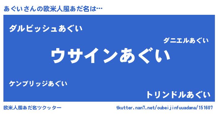 | 意味不明あだ名 | 『とにかく怪しいあぐい』『自称あぐい』 |