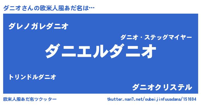 | 女子向けラノベタイトル風あだ名 | 『ダニオ恋絵巻』『ダニオ伯爵の花嫁』 |