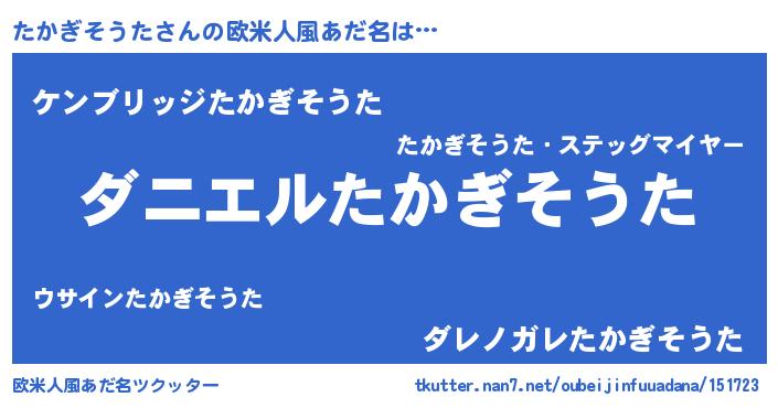 | 意味不明あだ名 | 『眠気覚ましガムたかぎそうた味』 |