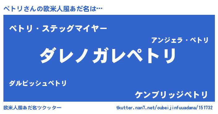 | 意味不明あだ名 | 『住所不定無職ペトリ(12歳)』『自称ペトリ』 |