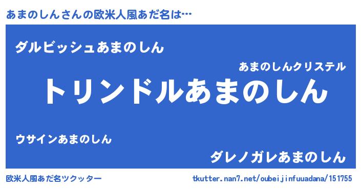 | 男性向けラノベタイトル風あだ名 | 『あまのしん~年齢イコール彼女いない歴の魔法使い~』 |
