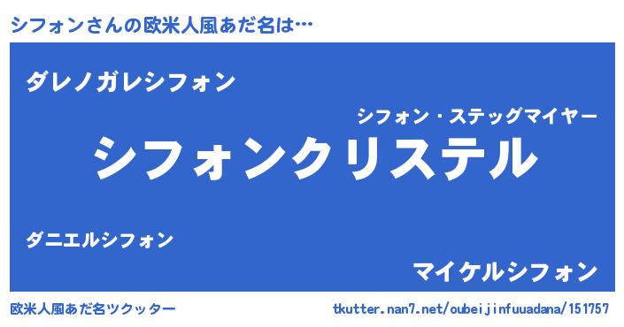| ファンタジー風あだ名 | 『エターナルシフォンー』『シフフェル』 |
