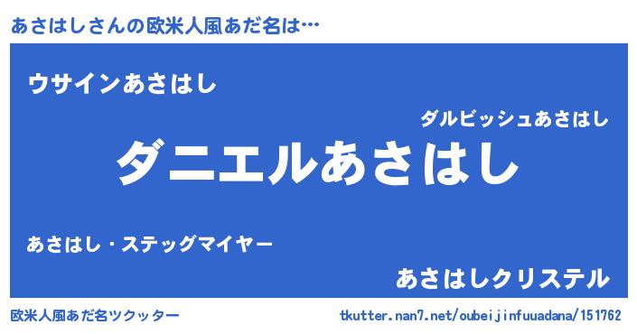 | 女子向けラノベタイトル風あだ名 | 『あさはし恋絵巻』『あさはしの契約王妃』 |