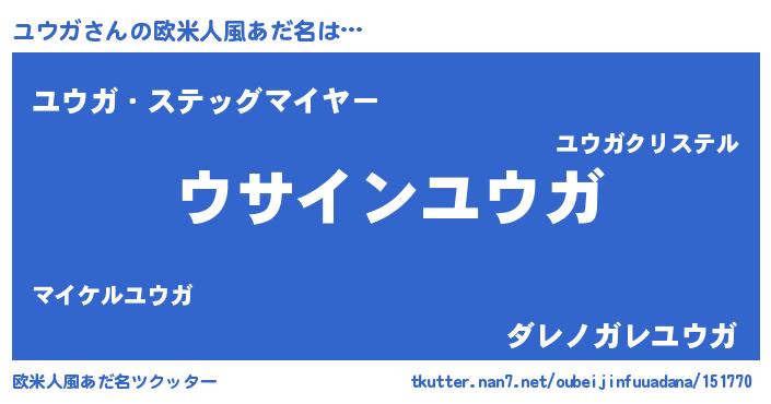 | 男性向けラノベタイトル風あだ名 | 『ユウガの嫁は女の子じゃないと思った?』 |