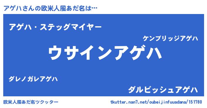 | 意味不明あだ名 | 『とにかく怪しいアゲハ』『自称アゲハ』 |