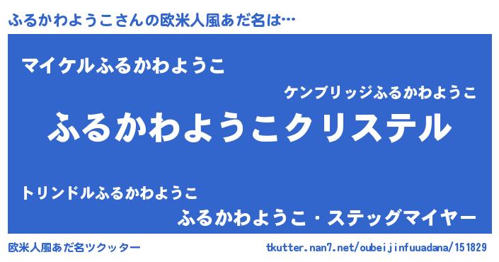 | 男性向けラノベタイトル風あだ名 | 『やはりふるかわようこの青春ラブコメはまちがっている 』 |