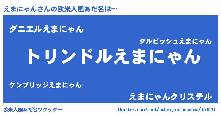 | 男性向けラノベタイトル風あだ名 | 『転生したらえまにゃんだった件』 |