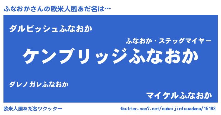 | 男性向けラノベタイトル風あだ名 | 『Re:ふなおかから始める異世界生活』 |