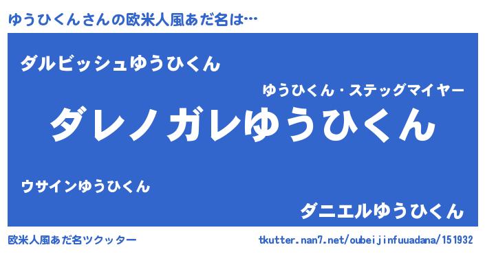 | ヒーロー風カッコイイあだ名 | 『仮面ユウダー』『ネオユウヒクン』 |