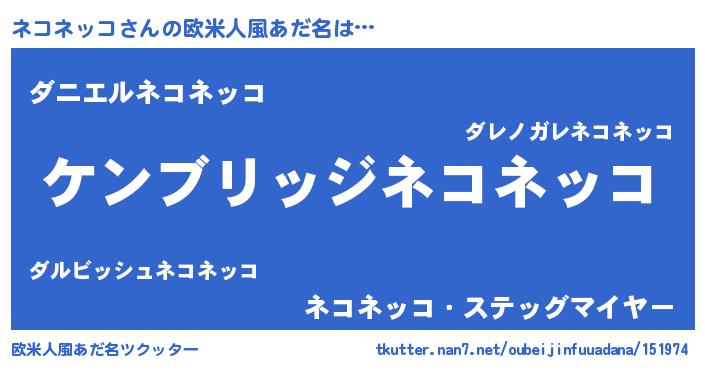 | 男性向けラノベタイトル風あだ名 | 『Re:ネコネッコから始める異世界生活』 |