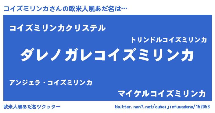 | 男性向けラノベタイトル風あだ名 | 『この素晴らしい世界にコイズミリンカを!』 |