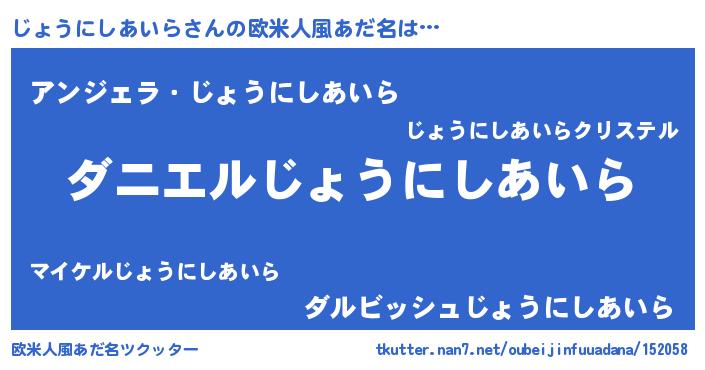| 女子向けラノベタイトル風あだ名 | 『じょうにしあいら恋絵巻』 |