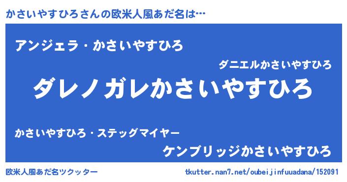 | 意味不明あだ名 | 『住所不定無職かさいやすひろ(59歳)』 |