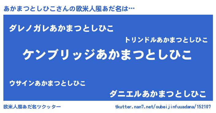 | 女子向けラノベタイトル風あだ名 | 『あかまつとしひこなんてお断りですっ。』 |