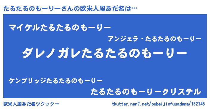| 意味不明あだ名 | 『住所不定無職たるたるのもーりー(89歳)』 |