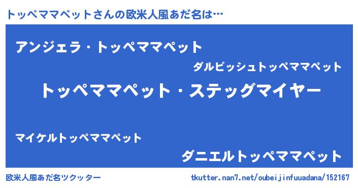 | 男性向けラノベタイトル風あだ名 | 『緋弾のトッペママペット』 |