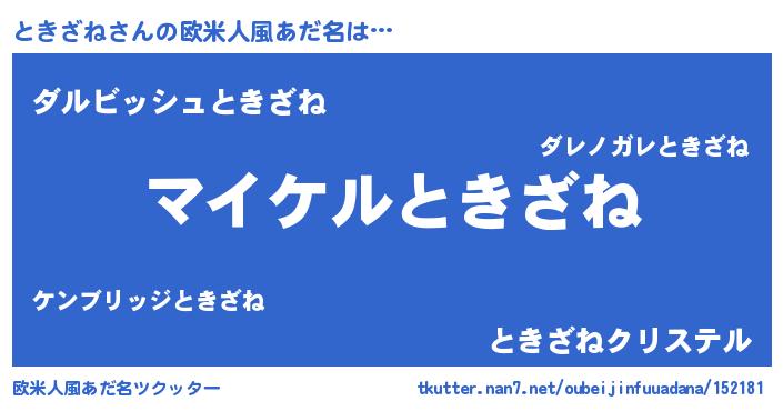 | 男性向けラノベタイトル風あだ名 | 『ときざねの憂鬱』『魔弾の王とときざね』 |