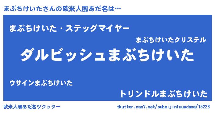 | 女子向けラノベタイトル風あだ名 | 『異世界で失敗しない100のまぶちけいた』 |