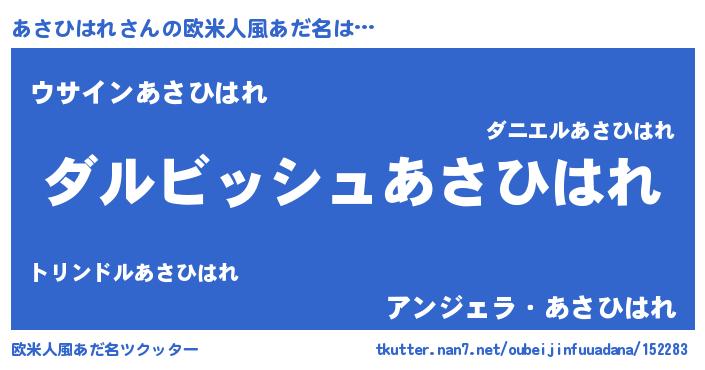 | 女子向けラノベタイトル風あだ名 | 『異世界で失敗しない100のあさひはれ』 |