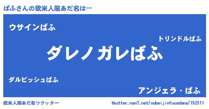 | 意味不明あだ名 | 『住所不定無職ばふ(43歳)』『ニラ科ばふ属』 |