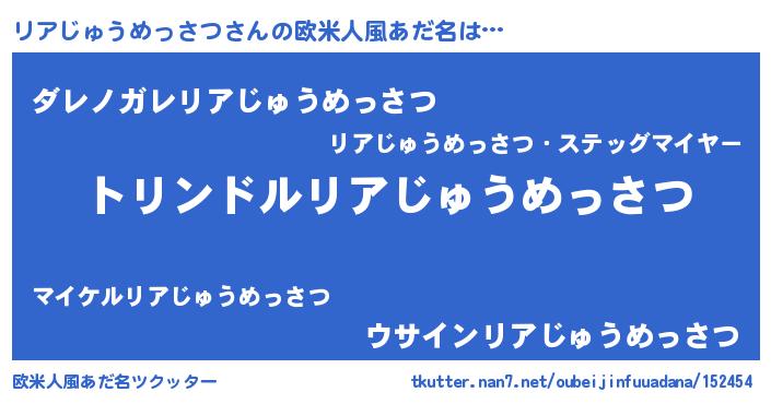 | 男性向けラノベタイトル風あだ名 | 『転生したらリアじゅうめっさつだった件』 |