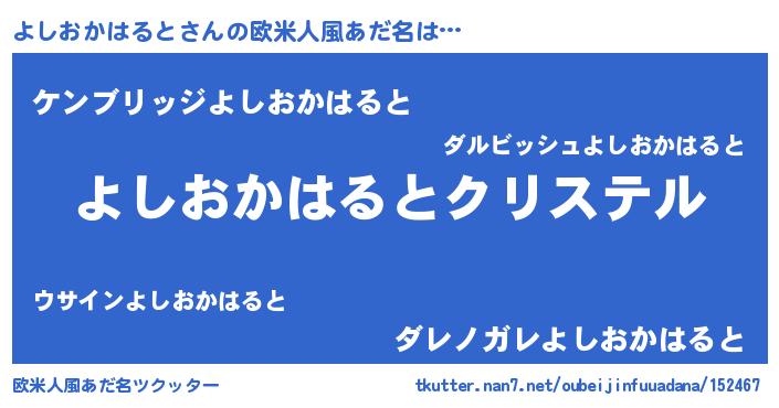 | 女子向けラノベタイトル風あだ名 | 『よしおかはるとの雑貨屋さん』 |