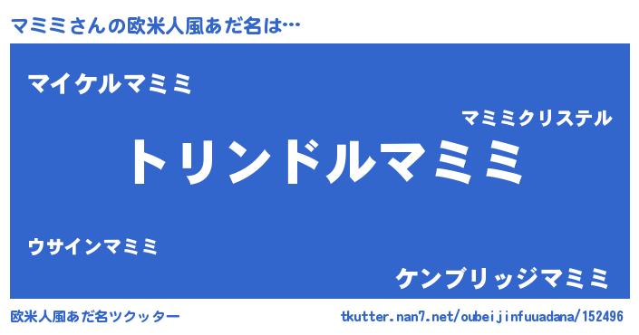 | 男性向けラノベタイトル風あだ名 | 『転生したらマミミだった件』 |