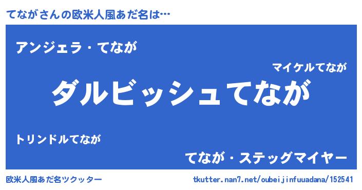 | 女子向けラノベタイトル風あだ名 | 『異世界で失敗しない100のてなが』 |