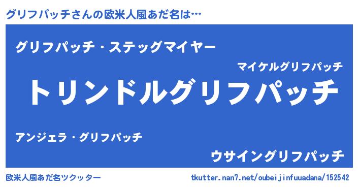 | 男性向けラノベタイトル風あだ名 | 『転生したらグリフパッチだった件』 |