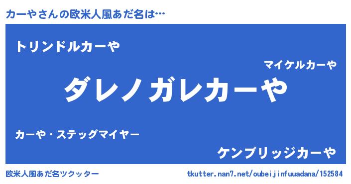 | 男性向けラノベタイトル風あだ名 | 『この素晴らしい世界にカーやを!』 |