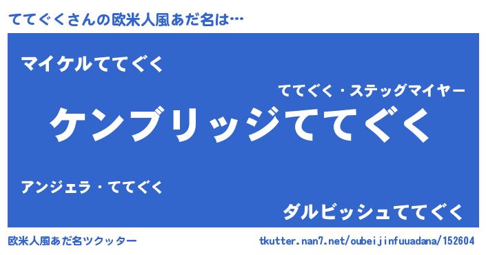 | 男性向けラノベタイトル風あだ名 | 『Re:ててぐくから始める異世界生活』 |