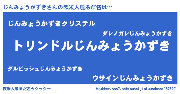 | 男性向けラノベタイトル風あだ名 | 『ジンミョウカズキスレイヤー』 |