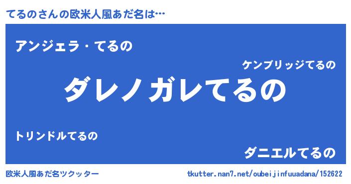 | 男性向けラノベタイトル風あだ名 | 『魔弾の王とてるの』 |