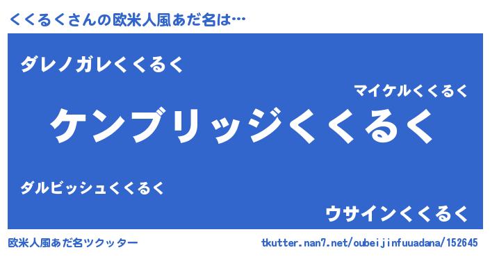 | 男性向けラノベタイトル風あだ名 | 『Re:くくるくから始める異世界生活』 |