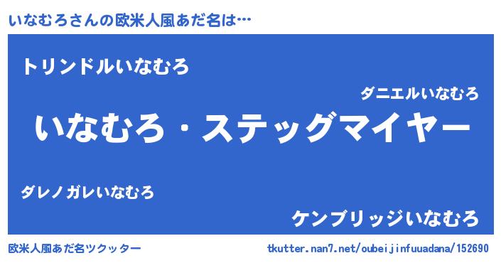 | 男性向けラノベタイトル風あだ名 | 『うちのいなむろが世界を掌握している!』 |
